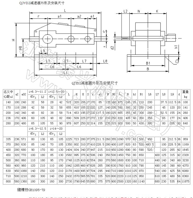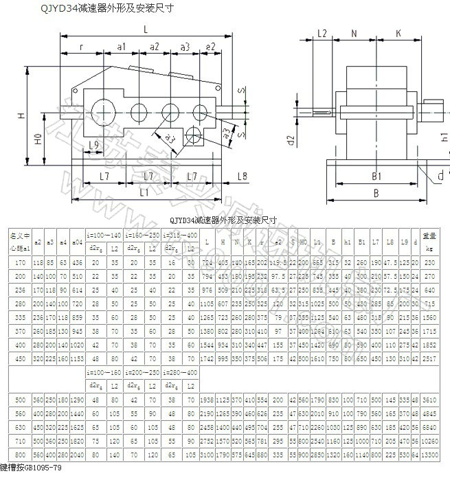 QYD、QJYD起重用减速机外形及安装尺寸