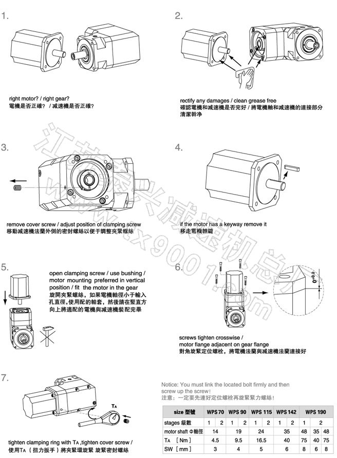 | WPS SERIES PRECISION PLANETARY GEAR BOXES MOUNTING INSTRUCTION |