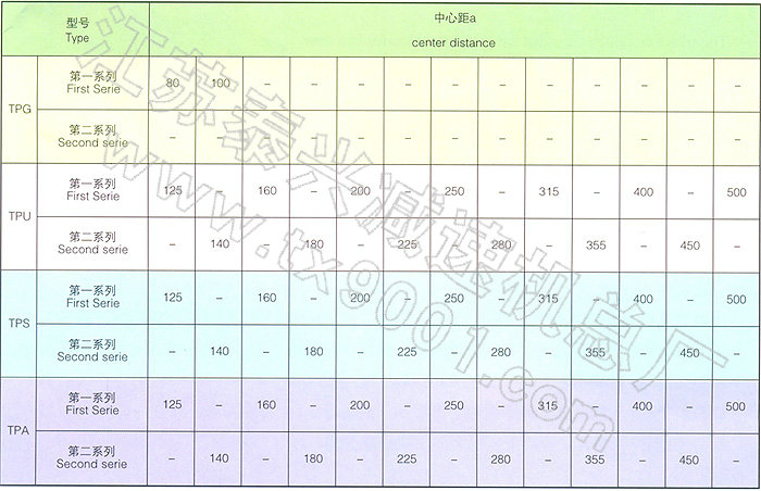 注:优先选用第一系列,表中第二系列的中心距仅提出型式规格。