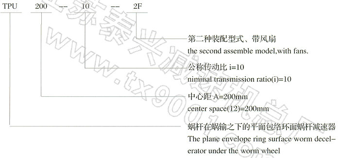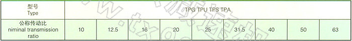 该减速器系列有四种型式:TPG、TPU、TPA、TPS.其中:TP-平面包络环面蜗杆组合为