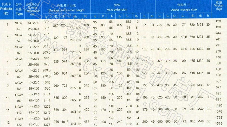 a.选用NGW型行星减速器时,应根据使用条件按下式计算:Nx=NsKlK2或Mx=MsKlK2
