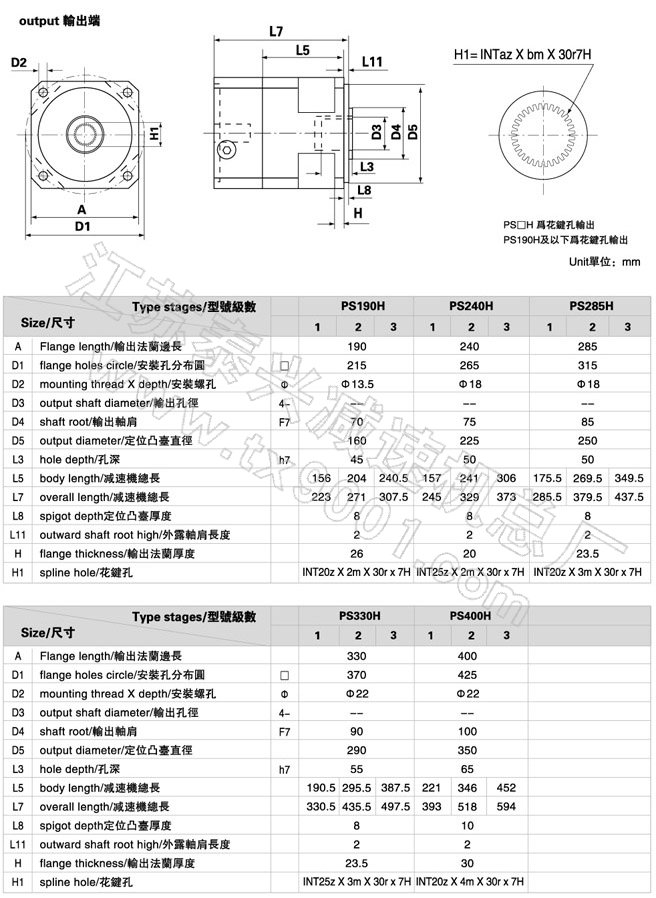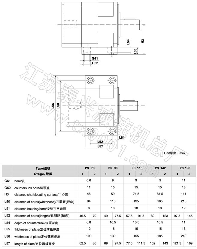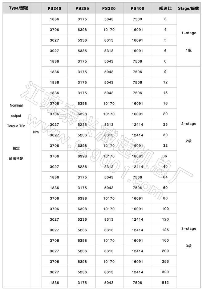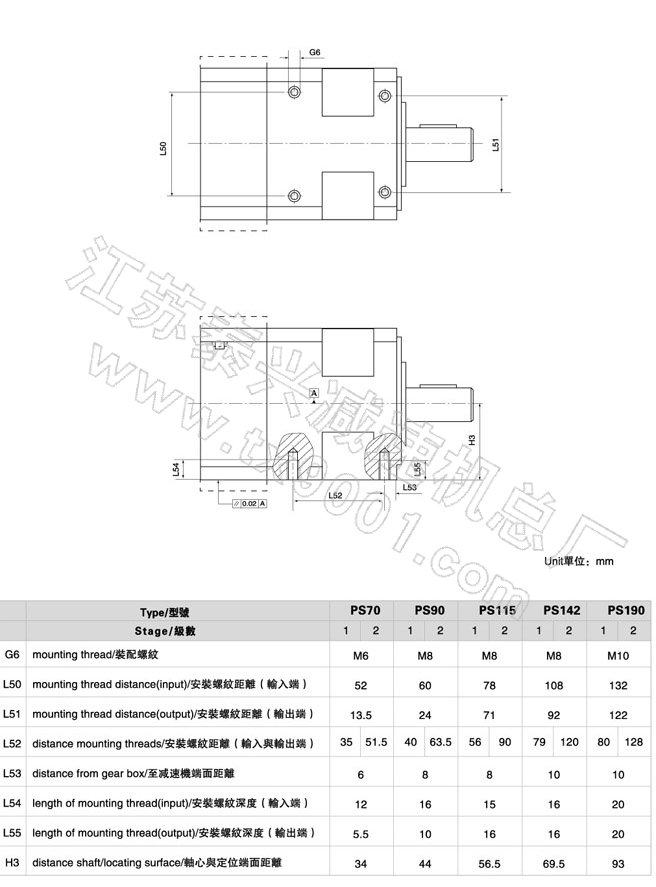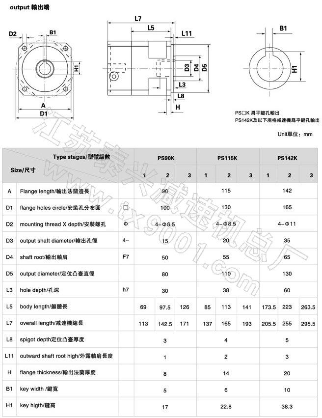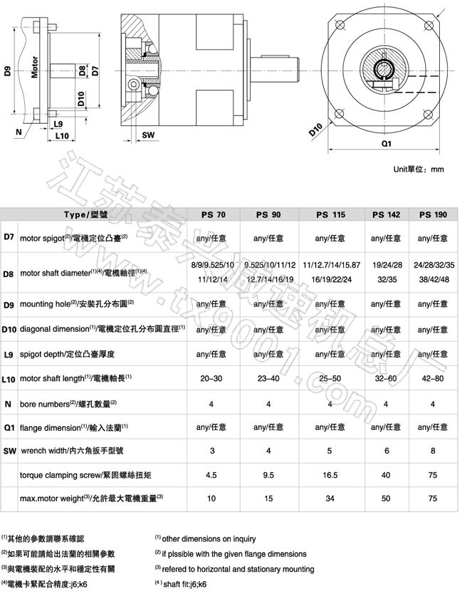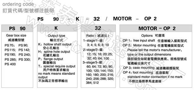 | PS/OP1 系列精密行星减速机任意输入轴型外形安装尺寸 |