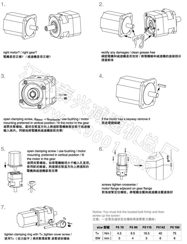 | PS/OP4 行星减速带底座时的安装尺寸 |