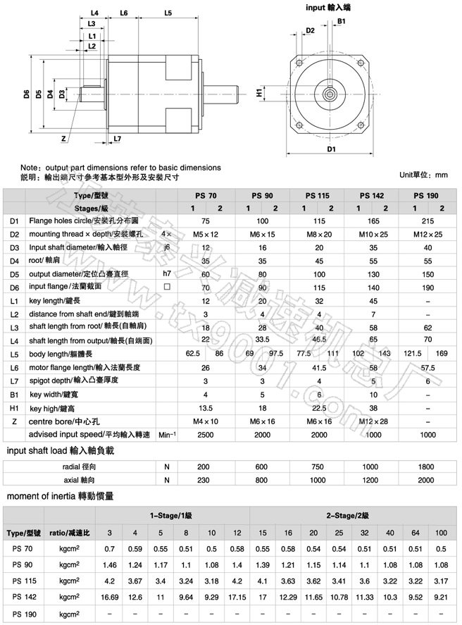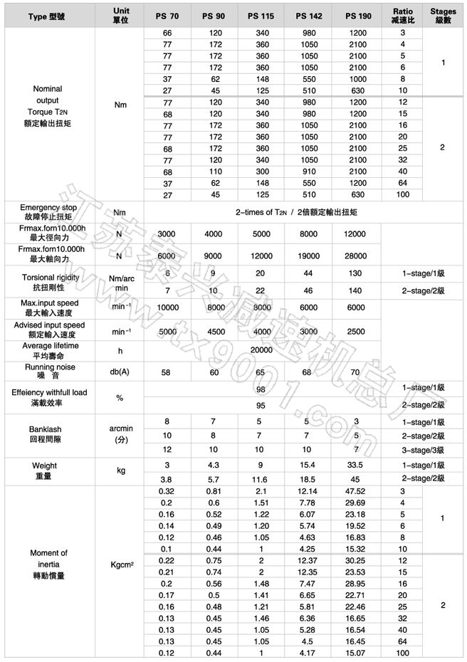 | PS 70-190 SERIES PRECISION PLANETARY GEAR BOXES TECHNICAL DATA |