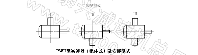 | 整体式PWU80-PWU355、型平面二次包络环面蜗杆减速器主要尺寸 |