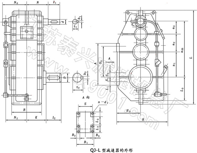 QJ-L型减速器外形尺寸和安装尺寸 (mm)