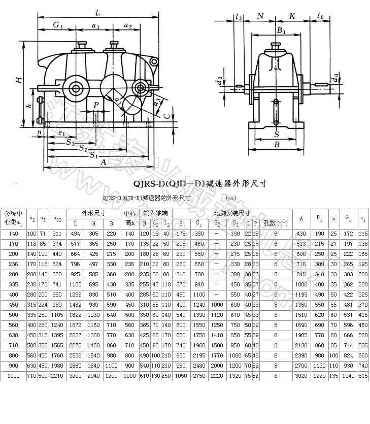 QJRS-D中硬齿面减速机图纸尺寸
