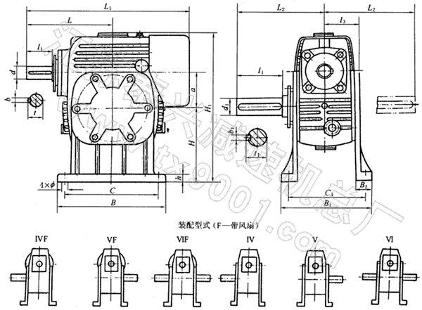 TPG80、TPG100、通用型减速机形式及外形尺寸(Ⅳ—Ⅵ)