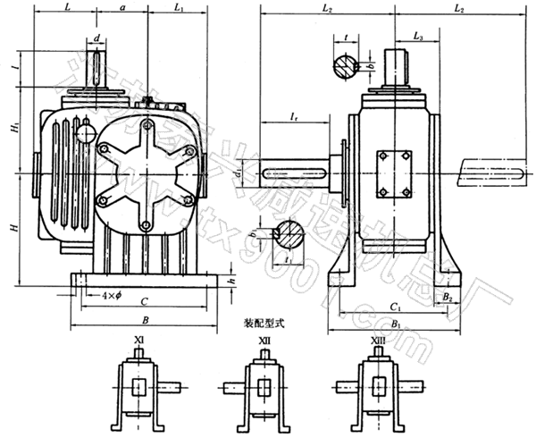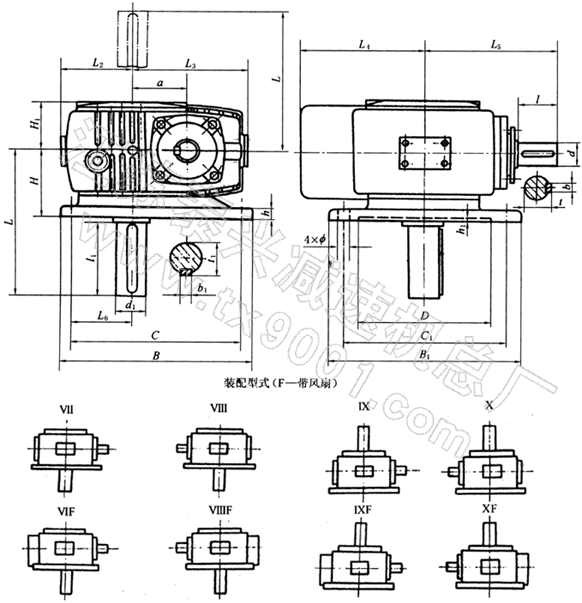 TPG80、TPG100、通用型减速机形式及外形尺寸(Ⅺ—XIII)
