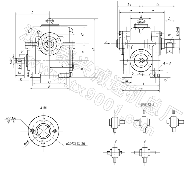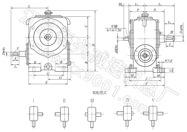 圆柱蜗杆减速器的外形、安装尺寸及装配形式