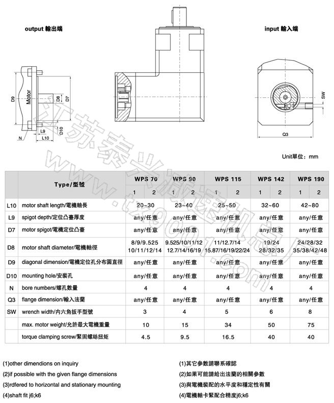 | WPS/OP2任意电机输入型式减速机外形安装尺寸 |