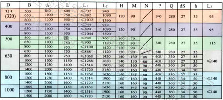 YZ型油冷式摆线电动滚筒外形尺寸表
