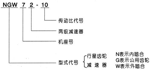 NGW型行星齿轮减速器有单级(NGW11—NGW121),两级(NGW42—NGW122)三级 (NGW73—NGW123)三个卧式系列。主要用于冶金、矿山、起重运输机械设备,也可用于其它类似工矿条件下作动力传动。