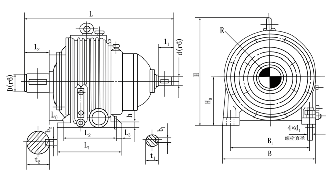 本系列减速器的规格的规定是根据传动比、功率和扭矩大小划分成12个机座号,及单级、双级和三级传动,共有27个机座号,58种速比,详细如下: