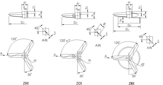 三窄叶整体旋桨式-ZHX、三窄叶可拆旋桨式-ZCX、三窄叶稳定环旋桨式-ZWX
