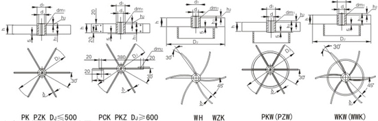 六直叶整体开启涡轮式PK、六窄叶稳定环开启涡轮式PZW、六直叶可拆开启涡轮式PCK、六弯叶开启涡轮式WK、六直叶稳定环开启涡轮式PKW、六弯窄叶开启涡轮式WZK、六窄叶整体开启涡轮式PZK、六弯叶稳定环开启涡轮式WKW、六窄叶可拆开启涡轮式PKZ、六弯窄叶稳定环开启涡轮式WWK