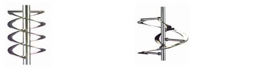 此类搅拌器为慢速型搅拌器,常在层流区操作,液体沿着螺旋面上升或下降形成轴向的上下循环,适用于中高粘度液体的混合和传热等过程。常用介质粘度μ<105cP,常用转速n=0.5-50rpm,v=2m/s。LD螺带式搅拌器的螺带外廊接近于搅槽内壁,搅拌直径大,强化了进罐壁的液体的上下循环,高粘度液体的传热过程很适用。LDG螺带螺杆组合式,同时具有螺杆和螺带的特性,强化了液体内外围的循环,特别对非牛顿型似塑性及粘弹性液体有效。ZLD锥底螺带型,ZLG锥底螺带螺杆型,其特点是底形可和锥形釜底相配,可按要求设计。