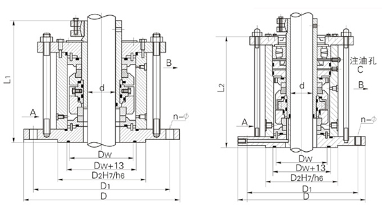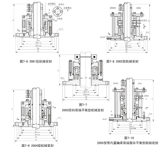 2000系列机械密封可与XD、XS型机架及AD安装底盖配套使用,2001、2002型使用压力<MPa,2003~2007型使用压力<1.6MPa,密封腔温度≤80℃,最大线速度<m/s,适用于各种弱腐蚀性气体。2002H、2005H为带废液收集器,2002K、2005K为带侧冷却水套型。通常2006型可用于2004型代用,2007型可用2006型代用。