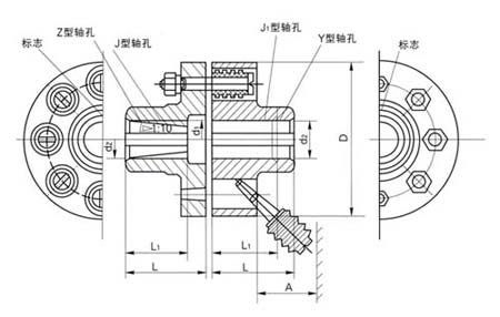 TL型弹性套柱联轴器标记示例: