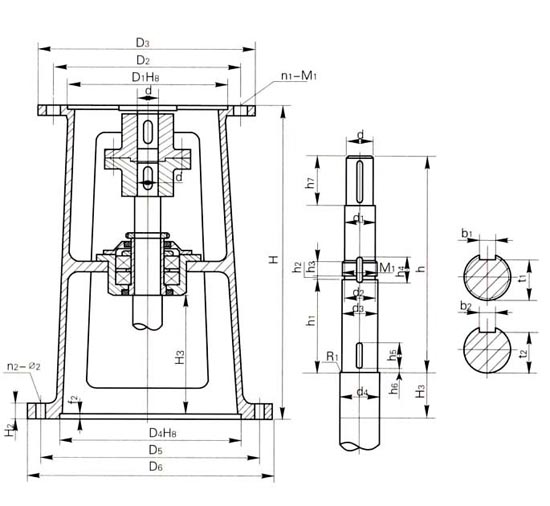 本 机架系列的JXLD型适用与XLD型摆线针傫行星减速机联接,JBLD型适用于与BLD型摆线减速机相连接。为使搅拌轴与轴承室装配。维修方便,本公司对 轴承室结构进行改进设计。同时对BLD2、BLD3、BLD4与相配的机架JBLD2、JBLD3、JBLD4的轴承室加大。使之与较粗的搅拌轴相一致。 a、Ⅰ型为普通型。Ⅱ型为增高型。 b、本系列机架以选好与之配套的联轴器型号及规格,请一并注明。